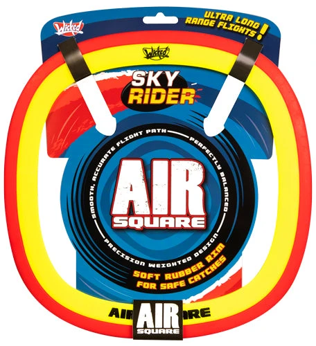 New to the Wicked Sky Rider range is the uniquely shaped Air Square! With its precision weighted design, the Air Square flies incredible distances with a smooth, stable flight path. Catch with ease thanks to the soft rubberised corners that make the Air Square look amazing as it flies through the air!