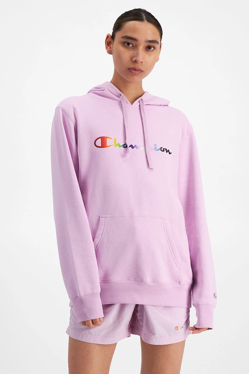 - Champion Pride hoodie with rainbow Champion script detailing on centre chest