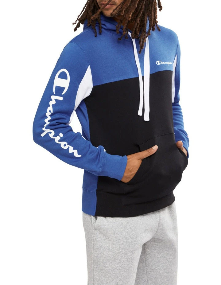 Keep it colourful while you stay snug in this men’s Colour block Crew Sweatshirt from Champion. This standard-fit sweatshirt is made from soft cotton fleece in a blue, white and red colourway. It features a crew neckline, long sleeves and ribbed trims. With a small logo to the cuff, this sweatshirt is finished with script Champion branding to the chest. Machine washable.