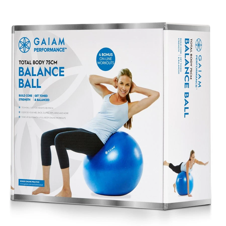 Use the Gaiam Balanceball to improve your body’s core strength and natural balance while getting trim and toned. You can exercise abs, back, glutes, hips, arms and more. High Density PVC Construction, anti-Burst Capacity To 130kgs and inflation pump Included.