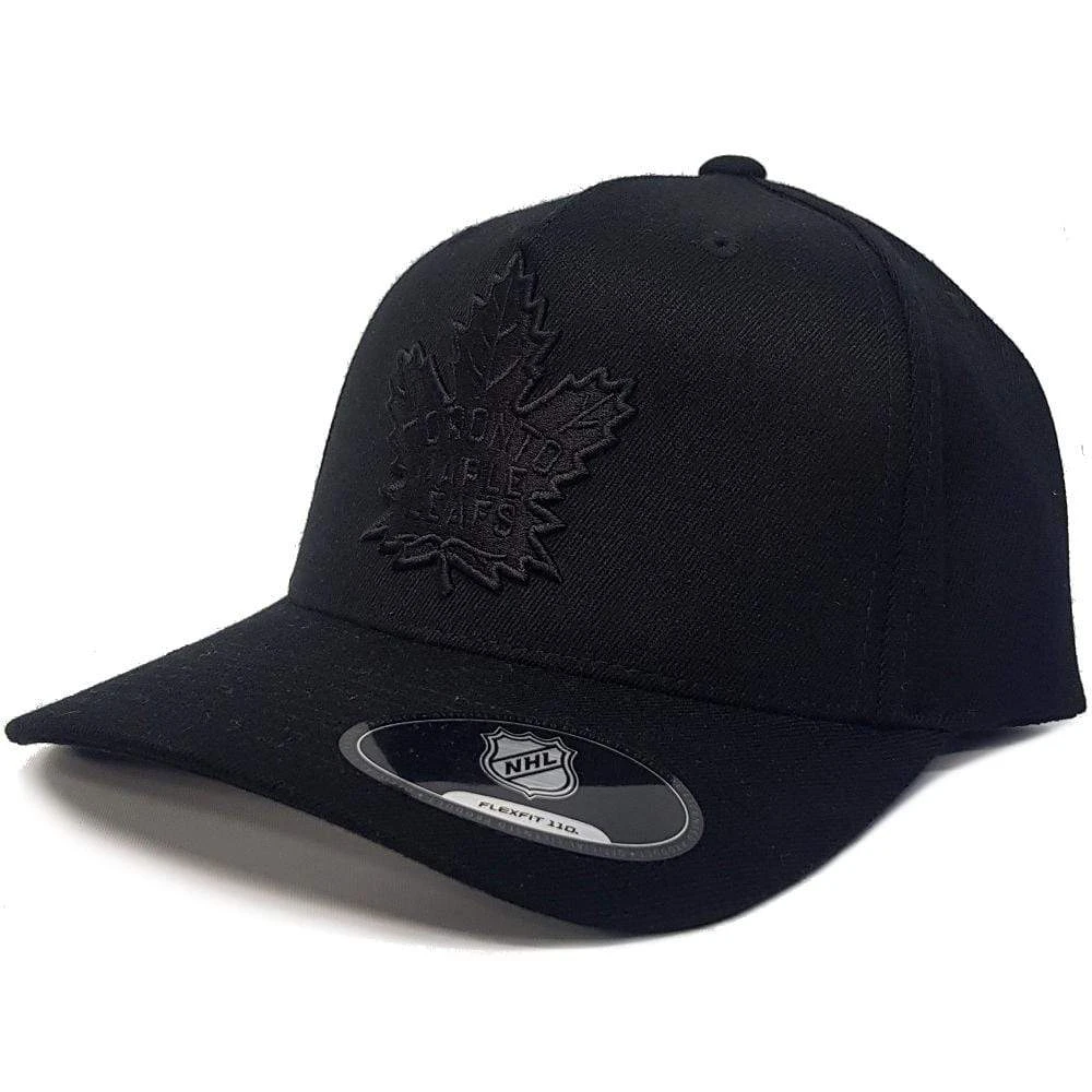 Shop the Mitchell & Ness Crest 110 Pinch Panel Snapback Toronto Maple Leaves in Black on Black online