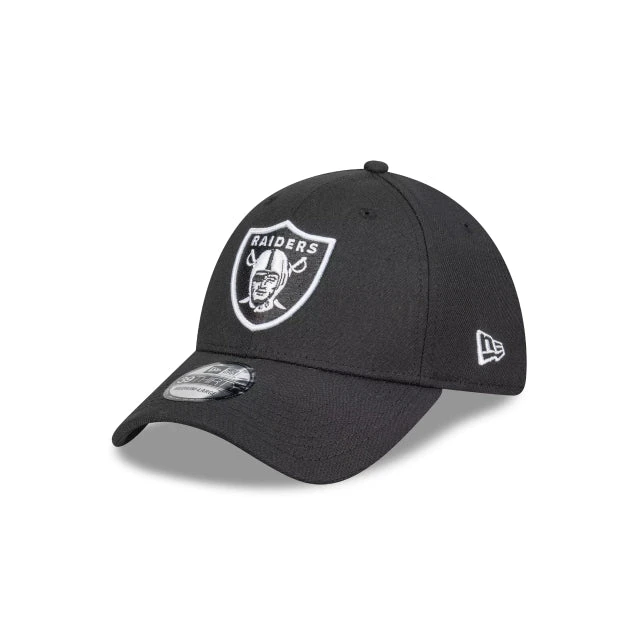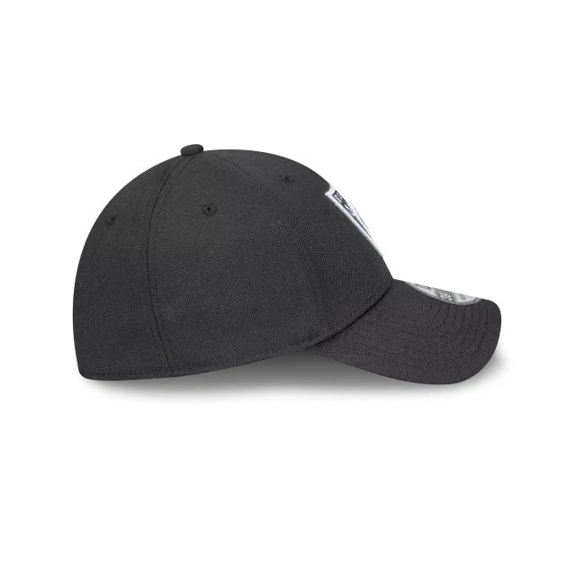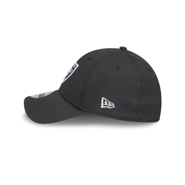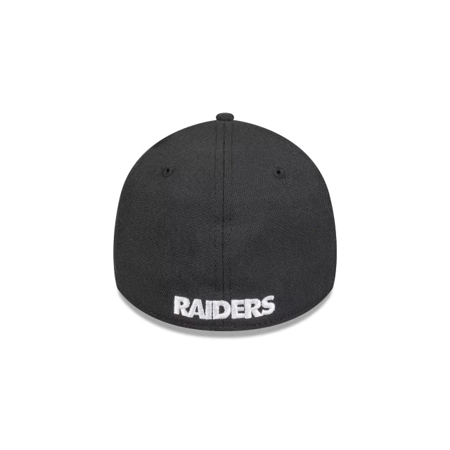 Las Vegas Raiders 39THIRTY cap features a black crown with a raised Raiders logo embroidered on the front. The cap also has a stretch fit for comfort and the team wordmark embroidered on the back.