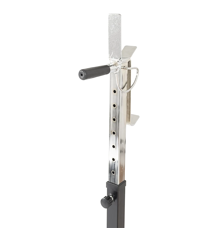 The bar rest comes with new and improved safety hooks to lock barbells in place once user has finished their workout. This unit also comes with new and improved screw pin adjusters making the machine tight and secure for all weights, lifts and presses.