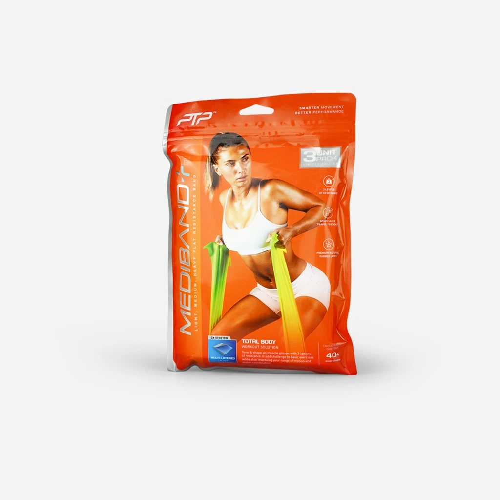 This special combo pack contains 3 resistance levels – Light, Medium and Heavy, designed for all fitness levels and goals. Featuring multi-layered latex, the Mediband is designed to deliver progressive resistance training by effectively conditioning muscles for functional and sports specific movements.