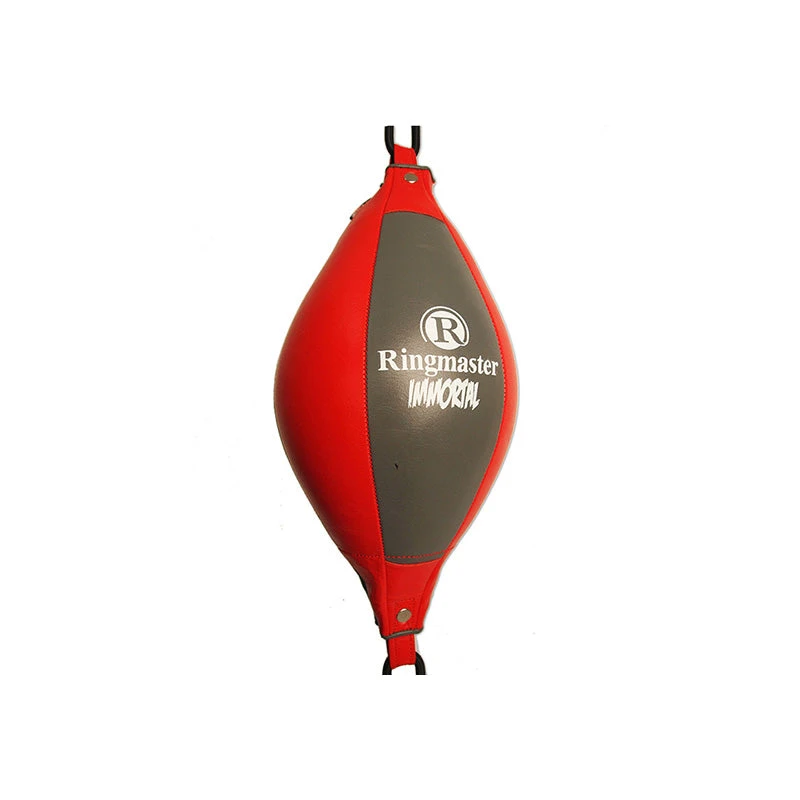 Step through the ropes with total confidence after training with the Ringmaster Double End Bag. This bag will transform you into a fundamentally sound boxer, helping to develop quick strikes and counter punches. The bag features top quality, all-leather construction with triple reinforced top and bottom loops. Double end cables are included. Take your training to the next level with the Ringmaster Boxing Double End Bag.