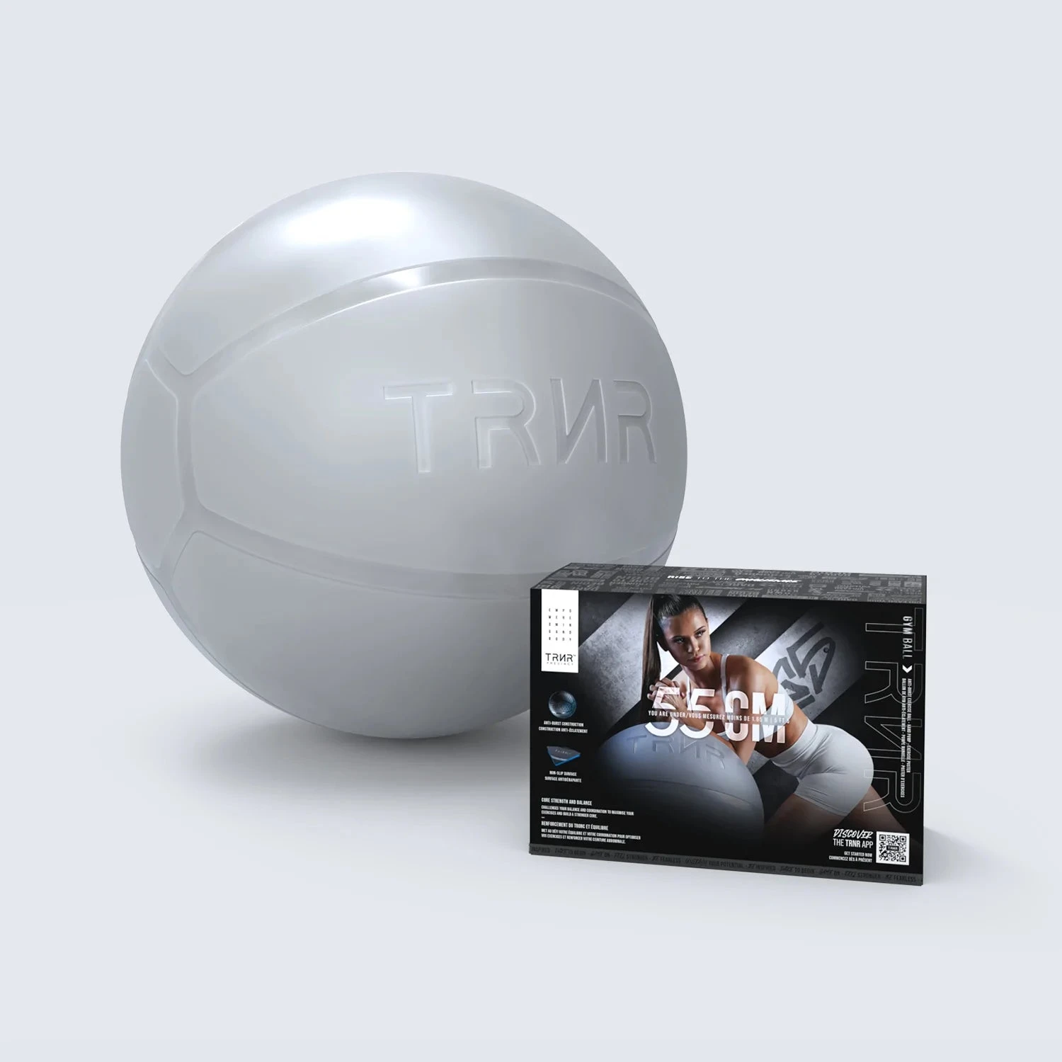 The 55 cm TRNR Gym Ball is a must-have training tool, delivering greater core strength, balance, coordination, range of motion, joint stability, and postural alignment. By adding instability to your workouts, your deep abdominals, back and pelvic floor muscles have to work harder to keep you in position. This makes it ideal to strengthen these often-neglected muscles, preventing muscle imbalances, back pain, and injuries. Though specifically designed for core strength, the Gym Ball can be also used in a wide range of exercises targeting your arms, hips, glutes, and legs. It comes complete with a manual pump and TRNR innovative dual tool, allowing you to inflate the ball to its correct size (by lining up the two holes with the markings on your ball), as well as to remove the plug (using the forked end).